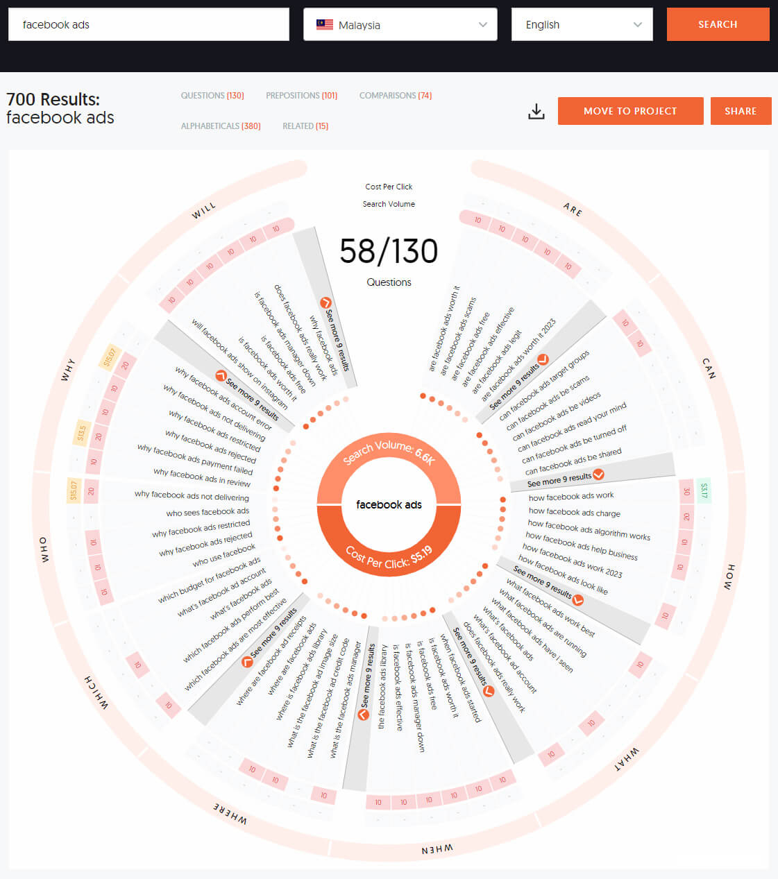 Answer the Public gives current data not only about the main topic but also the intent surrounding the topic such as is it a question or a comparison statement. Understanding the intent behind the topic could provide digital marketers accurate direction to what kind of messaging they want to get across.