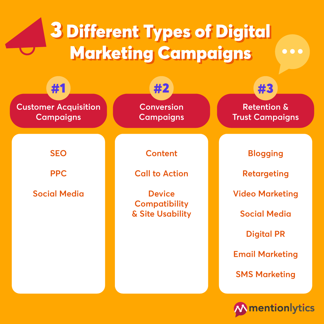 TLDR: Digital marketing campaigns are the specific, focused initiatives you’ll run, using those tactics, to hit specific objectives.