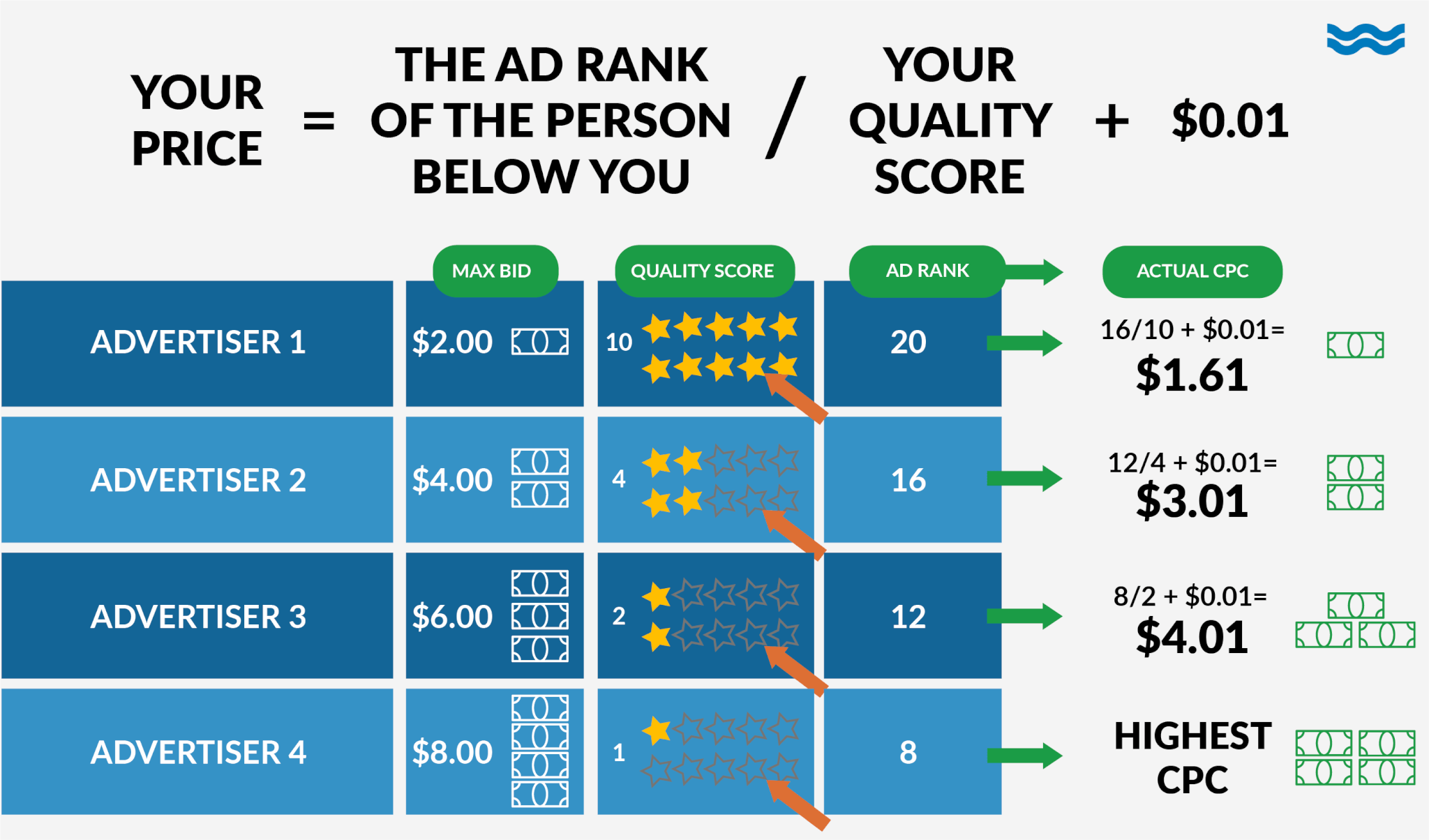 - Prioritise keyword relevance as this can improve your chances of a higher Quality Score and better Ad Rank.
