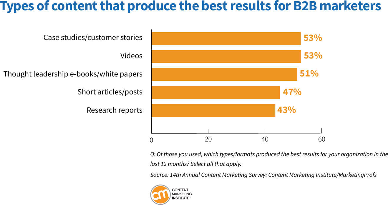Contern Marketing Institute provide an interesting insight in their 2023’s B2B Content Marketing research where they indicated that the use of case studies increase to 78% compared to the previous 12 months by B2B businesses. Furthermore, the research also found case studies to be the type of content that generates the best results – overperforming ebooks, white papers, short-form contents.