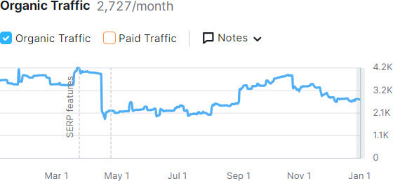 Backlinko is a prime example of showing how blog is still relevant in today’s day and age. This site is a library of blog articles about various topics related to SEO, digital marketing, content marketing, paid marketing and more. It maintains a steady average of 2k organic traffic each month and this translates a clear value and demand for long-form content type.