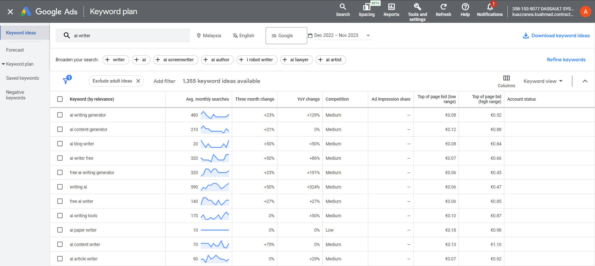 You can expand your list and discover related keywords. Pay attention to the search volume and keyword difficulty of each keyword. High search volume indicates high user interest, while low keyword difficulty suggests less competition. Look for keywords that align with your content goals and have a clear search intent.
