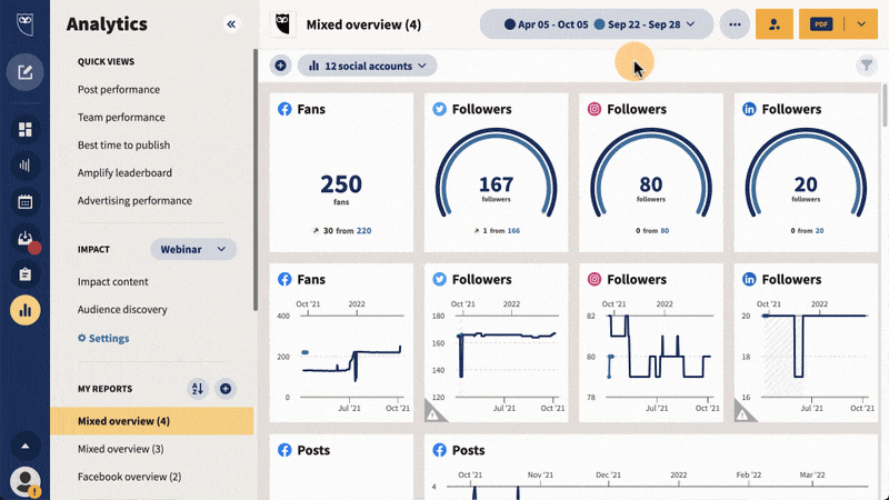 Additionally, pay attention to user engagement metrics such as social shares, comments, and backlinks. These indicators can give you insights into your content’s perceived value and relevance. You can easily access this data from any SEO or social media tools available in both paid and free version. Hootsuite is a valuable social media analytics tool that lets you in on the important insights from your content.