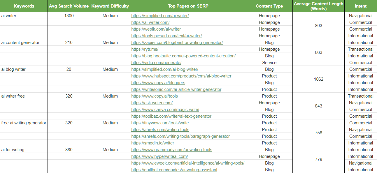 Once you have identified keywords with clear search intent, it’s time to optimise your content around them. Start by creating a list of keywords that align with the search intent you want to target. You can include pages from competitors that are ranking for the same keywords so you can improve your own content.